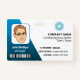 This professional looking company ID tag is for the manager of a company. The design is corporate looking with a blue abstract detail on white and a place for the company logo and bar code.