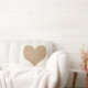 This modern white pillow features a faux gold leather heart.