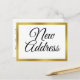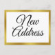 'New Address' appears in black script on the front of this moving announcement. On back you can personalize your card with your change of address with your name, new address, e-mail address and/or cell phone numbers. All text can be edited or deleted.