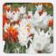 Bright White and ginger tulips in the garden. The photo was taken in June 2022. The poster is suitable for interior design.