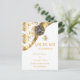 White and gold damask save the date announcement postcard