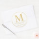 White and Gold Elegant Monogram Business Classic Round Sticker