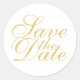 White and Gold Elegant Wedding Save the Date Classic Round Sticker