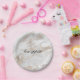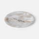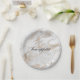 Chic all occasion paper plate done in a white and gold marbled look. Black text, in the middle of the plate, reads bon appétit, and can be personalized to read what you want. Matching party supplies are available.