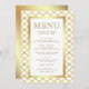 Elegant menu card featuring a faux gold foil border against a gold Quatrefoil background.