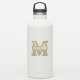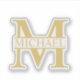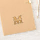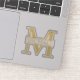 feature personalized gold monogram in classic serif font style with box of name in the middle of monogram.