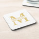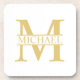 featuring gold personalized monogram in classic serif font style with box of name in the middle of monogram on white background.