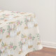 A tablecloth with fancy watercolor white pumpkins with accents of faux gold glitter. Surrounded by green leaves and pink wild flowers.