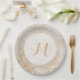 A background of white and gold granite with just a touch of sparkle. Easily personalize the monogram with just a few clicks.
