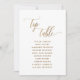 Elegant white and gold top table seating plan card with beautiful modern handwritten calligraphy details. "Top Table" in attractive faux gold foil print. Double-sided card, allowing guests to look at their names from both the front and back. Clear space all around gives you the liberty to use clips or punch holes for hanging displays, or use table holders or frames. White background and text in black. Ability to change the background colour to another colour by selecting "Customize further". You may edit the design. Please apply any changes to both front and back. A matching card with a template for the rest of the table numbers and guest names is also available. Part of our "Modern Elegant Wedding and Events Signage" collection, with a variety of coordinating products available.