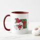 Destei's original festive design of two gift boxes together with a red and white Santa hat that has a Christmas Holly on it. The present box designs are white and green and they both have a beautiful red bow on them. There is also a personalizable text area for a name or other custom text.