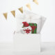 Destei's original festive design of two gift boxes together with a red and white Santa hat that has a Christmas Holly on it. The present box designs are white and green and they both have a beautiful red bow on them. There are also two personalizable text areas.