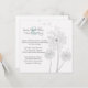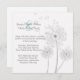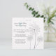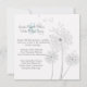 Elegant custom wedding invitation done in white and grey. This inviation has a square shape with a white background. Three fluffy grey dandelions sit on the right side. Text is done in a matching grey and is customizable to suit your needs. The back is matching with a space for the bride and grooms initials.