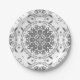 White and grey folklore ornament damask paper plate
