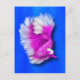 My illustrated white and hot pink Siamese fighting fish, also known as a betta fish, swimming on a blue background. Original illustration.