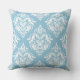 Elegant white floral damasks seamless geometric pattern over light-blue background.