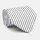 An eye-catching tie featuring thin vertical lines / stripes in light grey and white. The thin stripes create an almost hypnotic effect that is sure to start conversations.