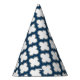 White and Navy Blue Trellis, Lattice, Quatrefoil Party Hat