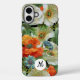 White and Orange Poppies on Black Initial Floral Case-Mate iPhone Case