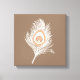 White and Peach Peacock Feather on Taupe Tan Canvas Print