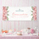 White and Pink Floral Quinceanera party banner. Designed with delicate pink roses accented with a sparkling diamond crown with a white background that can be changed to any color you prefer. This beautiful banner is a perfect addition to your quinceanera decor.