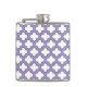 White and Purple Trellis, Lattice, Quatrefoil Hip Flask
