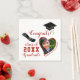 Create stylish white and red graduation napkins for the class of 2023 graduate with a heart-shaped photo (use the template to upload your picture), Congrats saying, and grad's cap and diploma illustrations. It's easy to change the background colour inside the design tool to match your school colours. Please, personalize with the graduate's name and surname, upload a custom photo, and add a year before ordering.
