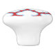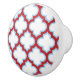 White and Red Trellis, Lattice, Quatrefoil Ceramic Knob