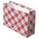 White and red with grey accents plaid pattern large gift bag
