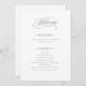 These elegant, simple white wedding welcome programs feature classic and luxe sage green calligraphy for a timeless, fancy look.