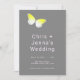 White and Yellow Butterfly Wedding invitation. Beautiful and Simple Grey wedding invitation with a yellow and white butterfly - perfect for spring and summer weddings.