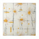 Charming floral pattern ceramic tile featuring white daisies with golden yellow centres scattered across a distressed, plaid-inspired background. The hand-drawn flowers, textured yellow accents, and subtle black grid lines create a rustic, vintage aesthetic with a fresh and sunny feel. Ideal for spring, summer, and country-inspired designs.