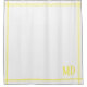 This elegant white shower curtain features yellow stripes along with customizable initials simply placed on the corner.