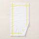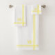 This elegant white towel set features yellow stripes along with customizable initials simply placed on the corners.