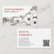 White floral business card with greenery and eucalyptus in a soft boho colour palette among white anemones with your name in a clay red art deco font. Pretty flower business card with a retro font with an illustration of white anemones in a vintage inspired style against a white background with greenery in shades of beige, clay red, grey, and grey-green. Personalize with your QR code, contact info, and in a clay red retro font, your name.