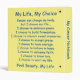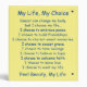 Painting of an abstracted white angel or white figure on a soft yellow background. The words of the cancer poem "My Life, My Choice" swirl around the figure in rainbow arcs. "My Life, My Choice. Cancer can change my body, but I choose my life… I choose to embrace peace. I choose to build friendships. I choose to cherish sweet memories. I choose to accept grace. I choose to have courage. I choose to believe in hope. I choose to welcome faith. I choose to know love. I choose to want my life. Feel Beauty, My Life. - By Laurel Latto