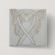 Awareness pin features the painting of a white awareness ribbon angel on a custom button pendant. White awareness angel ribbon art lapel pins or buttons can be customized with personalized messages to make great cause buttons for fundraiser pendants for cancer or other causes, awareness pin gifts, or other special pendant events or awareness lapel pin for cause's occasions.