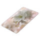 A flexible magnet with a photograph featuring an apple tree branch displaying its beautiful white apple blossoms.