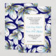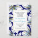 White, aqua, gold foil floral navy blue wedding invitation