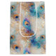 White Aqua Gold Peacock Feathers Medium Gift Bag
