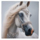 A white Arabian Show Horse with blue eyes, wearing a show costume, printed on a Tile.