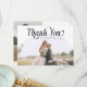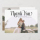 Elegant and minimal wedding thank you photo card featuring a large white arch frame with a swirly serif font that says "thank you" at the top. You can add a second picture on the back with a message.
