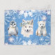 Adorable arctic animals: the white fox, penguin, and polar bear with blue snowflakes are "Wishing you a white Christmas like these arctic animals." Cute Christmas post card.