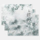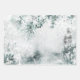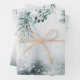 A winter holiday wrapping paper featuring a watercolor-painted blustering snowy winter scene with a white arctic fox surrounded by a snowing winter woodland.