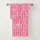 White Art Deco pattern 3 on pink background Bath Towel Set