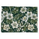 Lovely white azaleas with other small white flowers and snow in a design on hunter green with lighter green evergreens and azalea leaves. Seamless image.