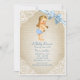 White Baby Boy Bear & Blue Bow Burlap Baby Shower Invitation