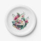 Piano recital reception paper plates, done in white, with watercolor artwork of a white baby grand piano and pink flowers.
