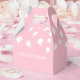 White balloon pattern on pastel pink background. Custom party favour boxes. Edit text to customize. Great for personalized party decor.