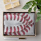 Close up photo of the red lace strings on a white baseball. Great for boys birthday or decoupage for bedroom decor.